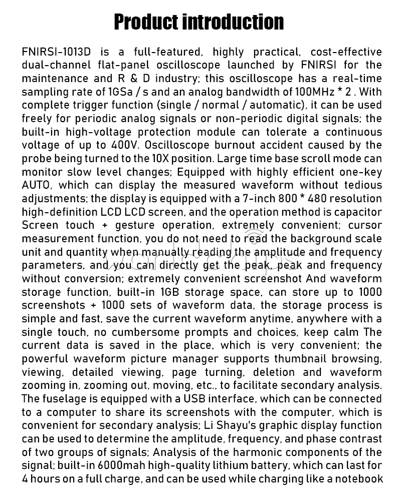 FNIRSI 1013D 7 Inches Digital Tablet Oscilloscope Dual Channel 100MHz Bandwidth