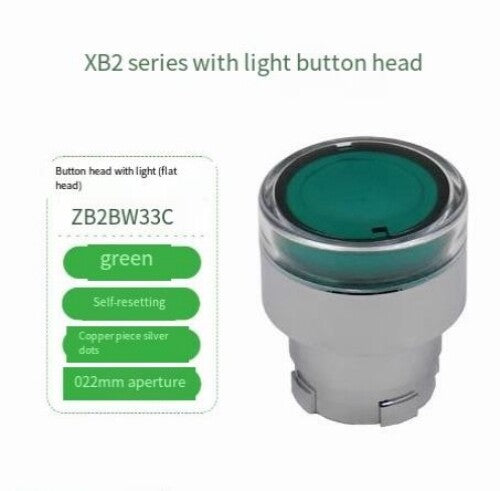 2PCS Green Self Resetting Metal Strip Light Button Head ZB2BW33C ZB2-BW33C