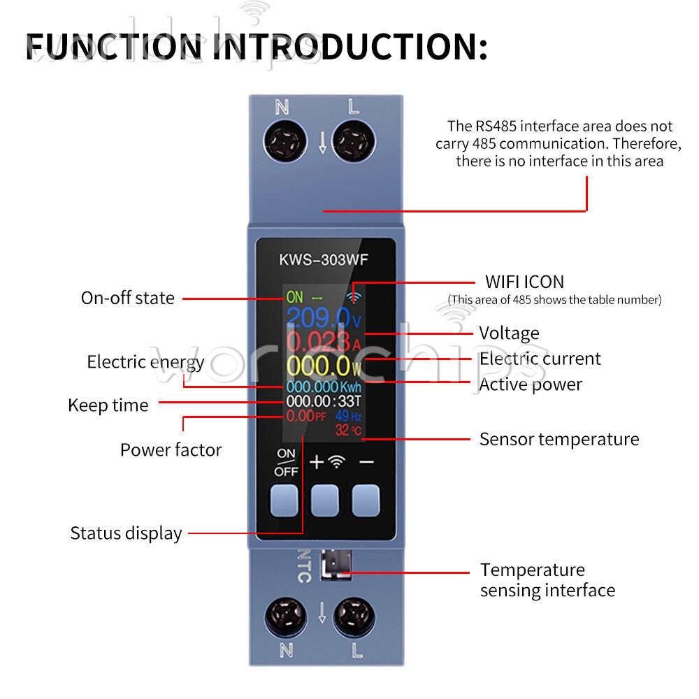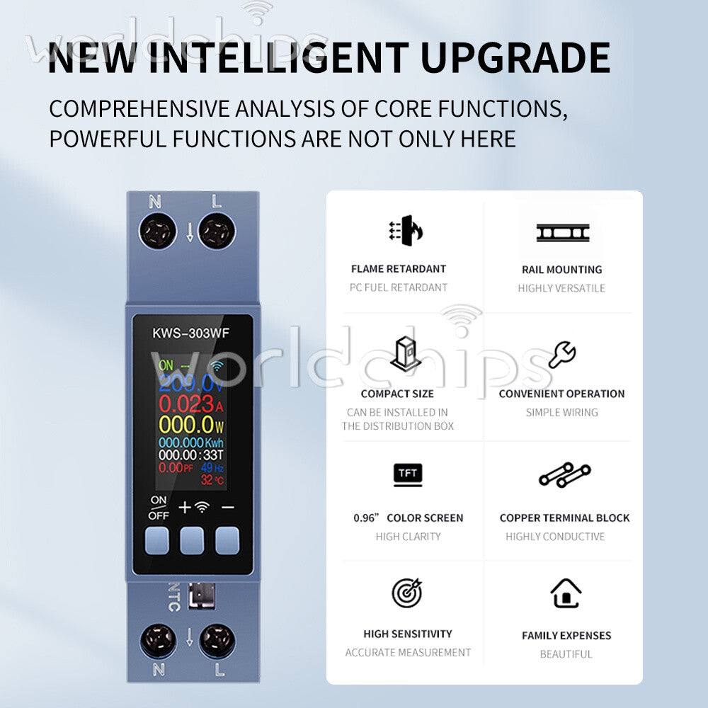 0.96" TFT 8-in-1 2-Phase AC Meter Voltage Current Power Meter AC 85~290V 0~40A