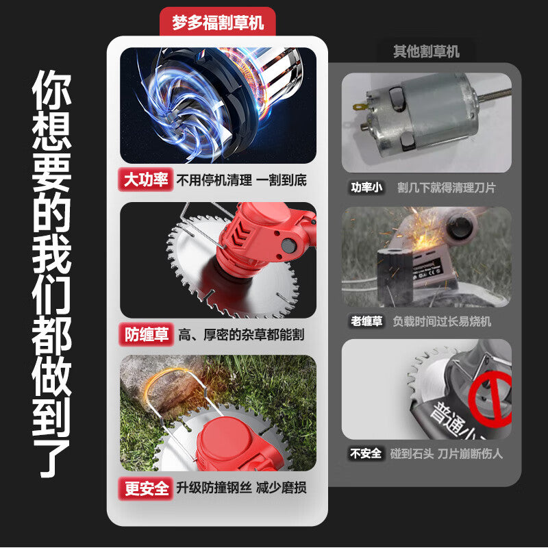 Mengduofu electric lawn mower is a high-performance, rechargeable brush cutter with 20V power and a 1-year warranty.